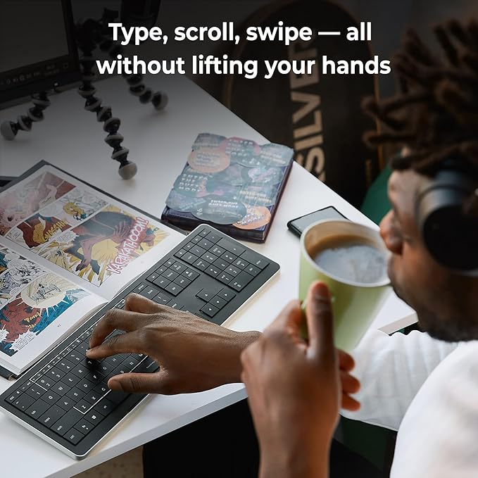 🚀 یک سطح. بدون نیاز به بلند کردن دست. CLVX 1 یک کیبورد بیسیم منحصر به فرد است که یک کیبورد و تاچپد را در یک سطح یکپارچه ادغام میکند - نیازی به ماوس یا ترکپد جداگانه نیست. تایپ کنید، بکشید، اسکرول کنید - همه بدون بلند کردن دست.
