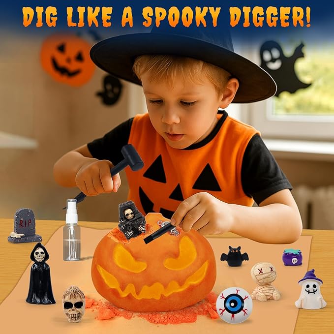 هدیه عالی هالووین برای کودکان - یک کیت کامل حفاری، اسباببازی علمی و مجموعه کاردستی در یک مجموعه. عالی برای سنین 6 سال به بالا، پسران و دختران. ایدهآل به عنوان لوازم مهمانی هالووین، سورپرایز ترفند یا خوراکی، سبد پرکن ترسناک، پاداش کلاس درس یا فعالیت STEM در روزهای بارانی.