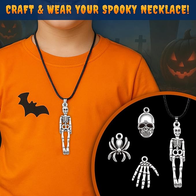 DIY NECKLACE & HALLOWEEN CRAFT – String the 4 metal charms onto the adjustable necklace cord. Create your own spooky jewelry for costumes, dress-up, party activities, trick-or-treat bag toppers & classroom crafts