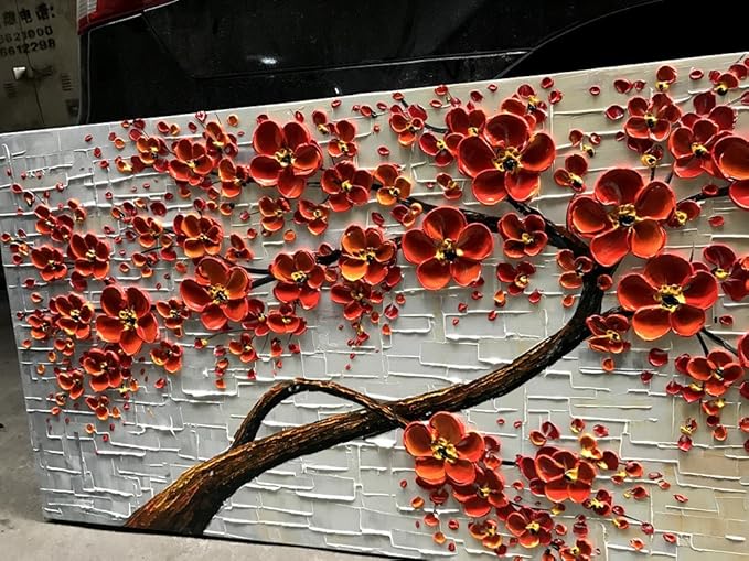 YaSheng Art - hand-painted Oil Painting On Canvas Texture Palette Knife Red Flowers Paintings Modern Home Decor Wall Art Painting Colorful 3D Flowers Tree Paintings Ready to hang 24x48inch