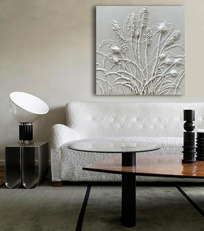 نقاشی دستی گل انتزاعی، بوم نقاشی رنگ روغن، دیوارکوب، اثر هنری تزئینی، 24×24 اینچ