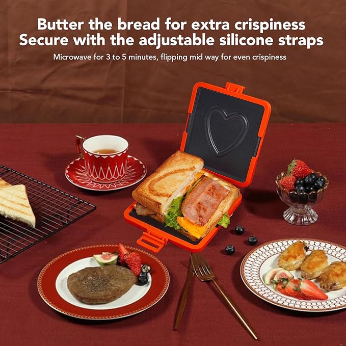 Quick Golden Crisp Results: In just a few minutes, you can enjoy golden, crispy sandwiches with the convenience of microwave cooking. Ideal for those on the go who need a quick toasty meal.