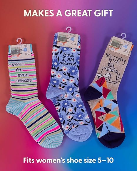 Very Best Quality: Blue Q Women's Crew Socks are woven from soft, luxurious combed cotton for comfort, nylon for strength and durability, and just a touch of spandex for long-lasting fun. The crisp, gorgeous graphics are vibrant and won't fade over time. Just right for daily, year-round wear.