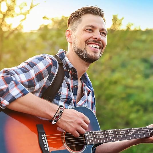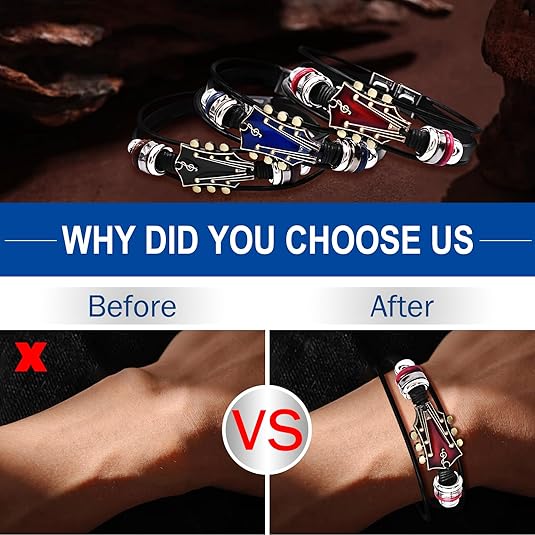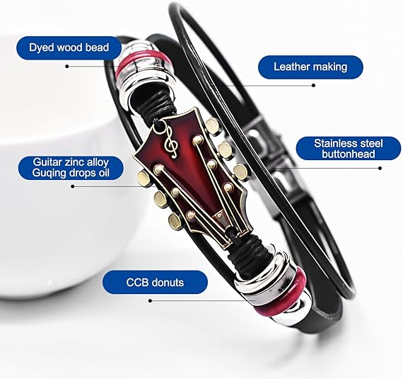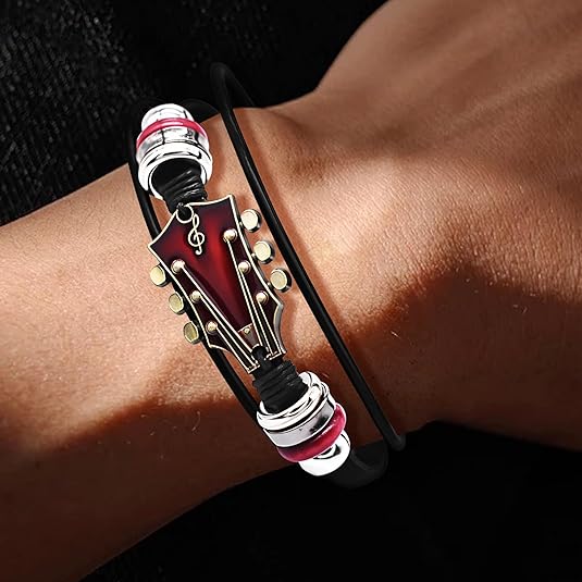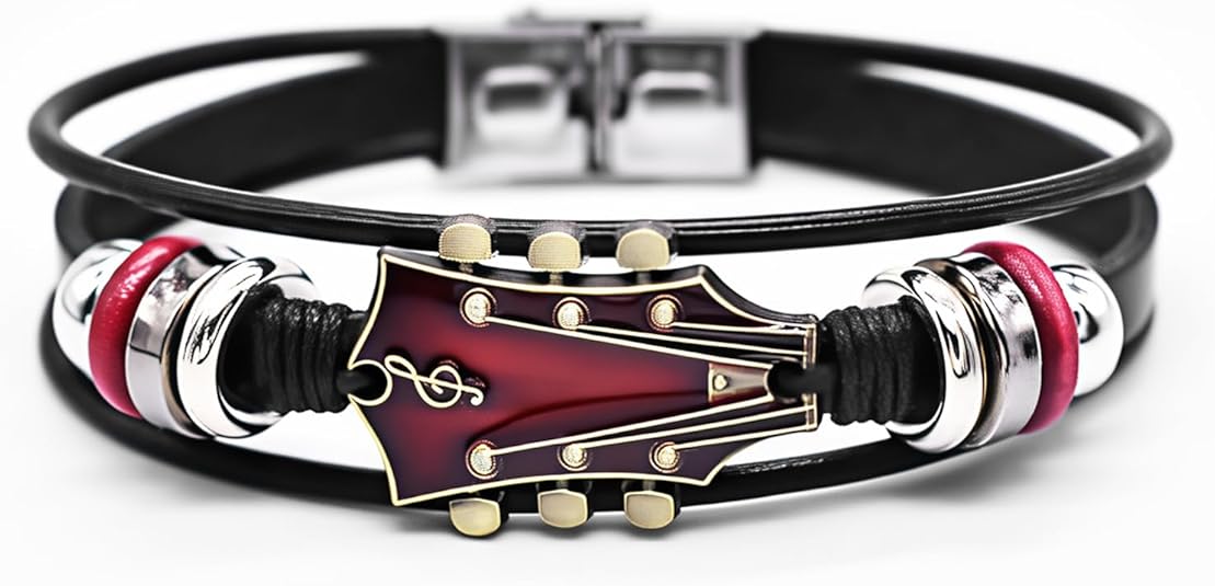 Easy to Wear:Guitar leather bracelet features a discreet yet safe stainless steel clasp for quick fastening. The 7.5-inch adjustable cuff bracelet contours comfortably to most wrists, blending edgy aesthetics with practical wearability.